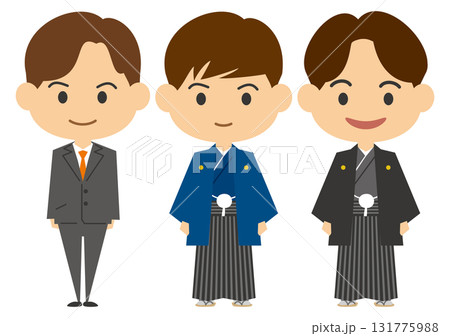 スーツ姿と羽織袴姿の男性のイメージイラスト