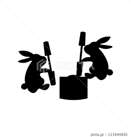 餅つきをするウサギのシルエット 切り絵風デザイン