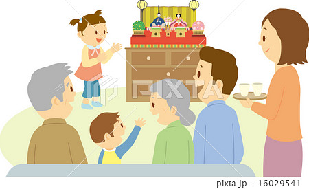 ひな祭りを祝う三世代家族