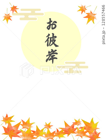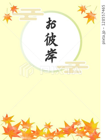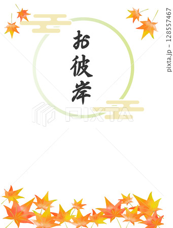 秋のお彼岸の筆文字風フレーム背景素材 和の紅葉チラシ枠 ベクター