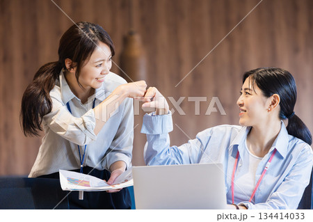 ガッツポーズ(拳を握って力強く)をしているビジネスウーマン