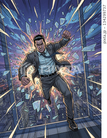 ガッツポーズをする男性ビジネスマンのイラスト(スーツ・切り抜き)