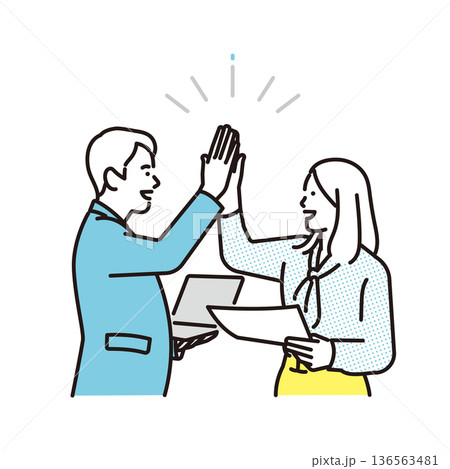 シンプル イラスト ハイタッチをするビジネスパーソンの男性と女性 ビジネスシーン