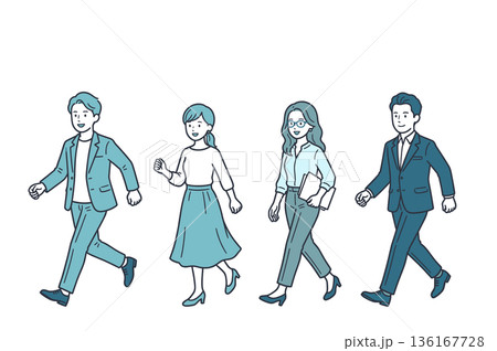 前に進むビジネスパーソンのチーム人物セットイラスト素材