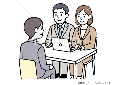 会社の面接のビジネスシーンの線画イラスト