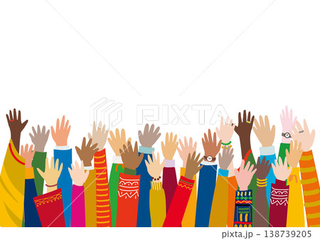 SDGs17色の世界の人々の挙手フラットイラスト