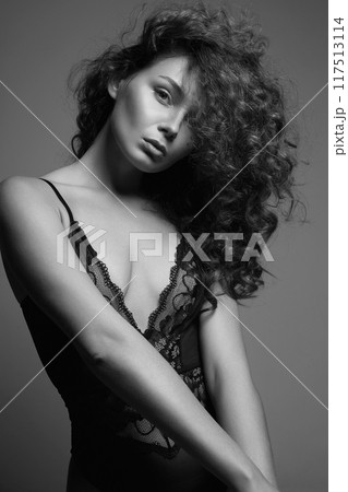 写真素材: black and white portrait of pretty sexual girl in underwear