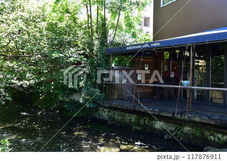 写真素材: 三島市・源兵衛川の流れとカフェ