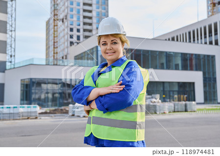 写真素材: Portrait of woman builder engineer supervisor at outdoor construction