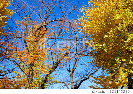 写真素材: 尾久の原公園の丘の紅葉と青空