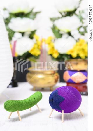 精霊馬(キュウリをお仏壇へ ナスを外へ向ける飾り方)[129272016]の写真素材は、人形、お盆、仏壇のタグが含まれています。この素材はYsPhotoさん(No.32929)の作品です。SサイズからXLサイズまで、¥550からPIXTA限定でご購入いただけます。無料の会員登録で、カンプ画像のダウンロードや画質の確認、検討中リストをご利用いただけます。 全て表示