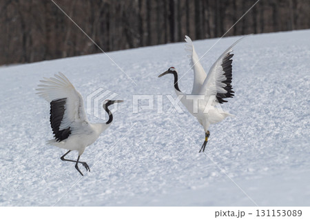 タンチョウ鶴の求愛ダンス-道東の冬景色