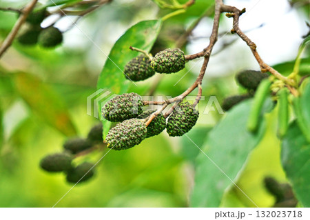 写真素材: 大きく成長したハンノキの実(秋、十月)