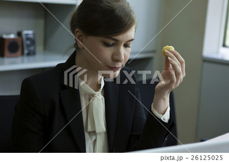 写真素材: 仕事をしながら食事をとるビジネスウーマン