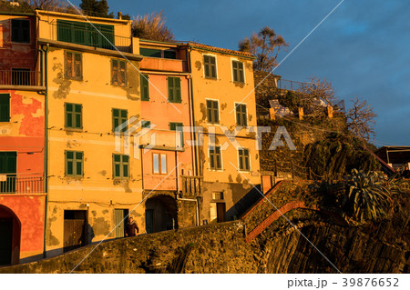 写真素材: チンクエ・テッレ(イタリア・リグーリア州)夕日に照らされたリオマッジョーレ