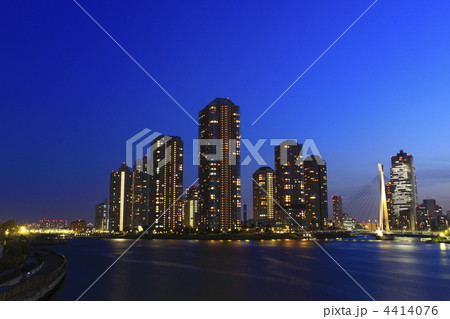 写真素材: 超高層マンション群が見える薄明夜景