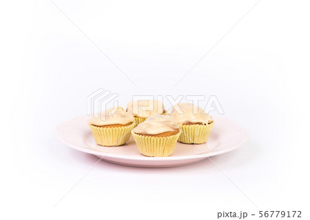 写真素材: Sweet dessert, cupcake with butter cream isolated on white background.