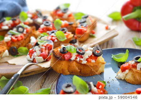 写真素材: Warm Greek bruschetta with feta cheese