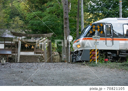 写真素材: 下原八幡神社を通過するワイドビューひだ