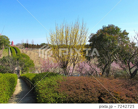 写真素材: 明石の梅林 (石ヶ谷公園) 梅と臘梅と道