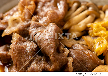 写真素材: 牛肉のすき焼き風煮の牛肉のアップ。
