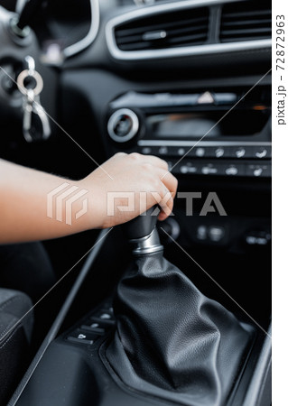 写真素材: Driver and car concept. Cropped photo of no face female model.