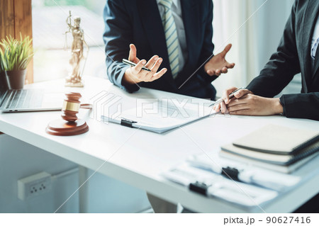 写真素材: Law, Consultation, Agreement, Contract, Attorney or Lawyer holding a pen is consulting with a client to explain the pattern of answering questions before going to court to decide a lawsuit