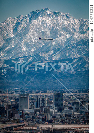 夜の仙台空港 離陸中の飛行機 宮城県名取市