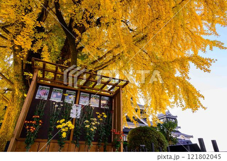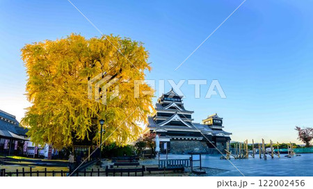 もっと知る(見学通路)から観えるイチョウ(秋景色)お城まつり(秋のくまもとお城まつり)(竹あかり)