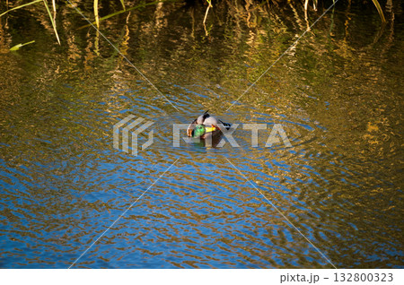 信濃川・やすらぎ堤の小鴨(こがも)の採餌