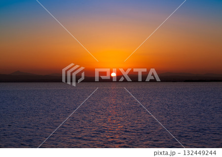 フランス、ニースの日の出の海の景色