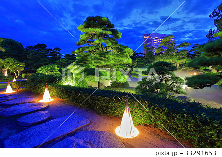 玉藻公園 披雲閣庭園のライトアップ&ミストシャワー