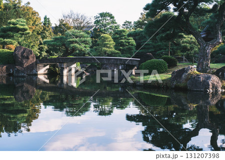 [姫路城西御屋敷跡庭園 好古園]大きな池が印象的な日本庭園の風景