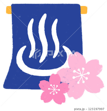 シンプルイラスト クレヨンタッチ 春の温泉旅行