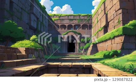 ゲーム背景 ジャングルの奥にある古代文明の宮殿遺跡風景