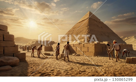 巨人族が築き上げるエジプトのピラミッド―神秘と幻想が交錯する壮大なデジタルアート