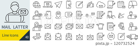 ベクターでモノクロのメールと手紙に関する線画アイコンセット