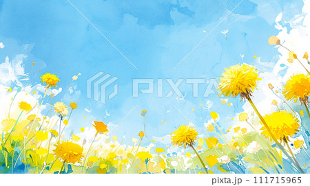 暖かみのあるタンポポと青空の水彩イラスト背景「AI生成画像」