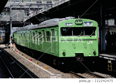 JR唐津駅に停車する国鉄103系電車(日本 佐賀県唐津市)