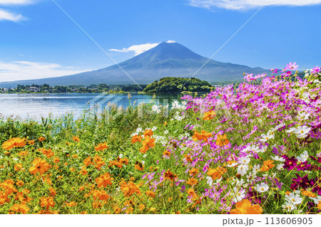 《山梨県》富士山とコスモス・秋の河口湖