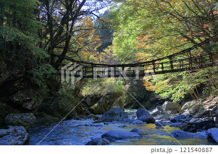 【徳島県】秋の紅葉した(祖谷のかずら橋)