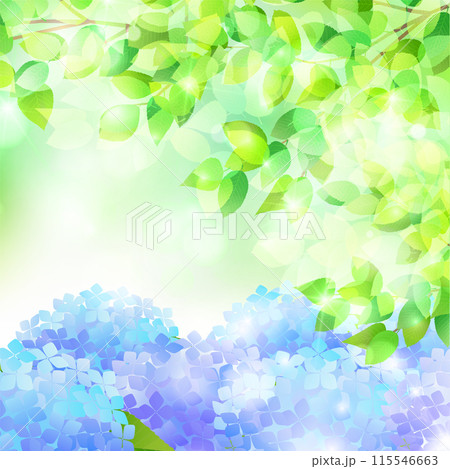 あじさい、イメージ背景、キラキラ、かわいい、イラスト、青
