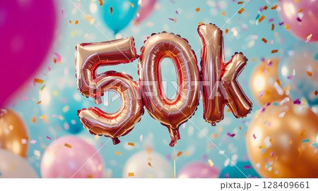 50k Subscriber Milestone Celebration Banner with Balloons