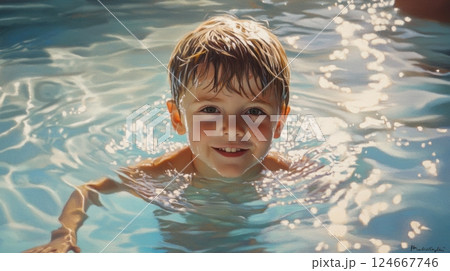 boy swimming in pool sunlight