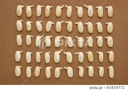 発芽玄米、整列、可愛い、発芽、向かい合わせ、下向き、ボケ、少なめ