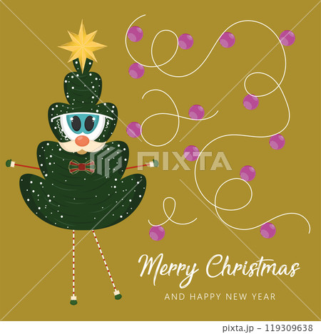 Merry christmas card Christmas tree catoon Vector