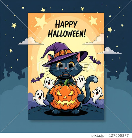 Halloween greeting card with hand drawn vector illustrations.