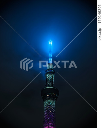 幻想的にライトアップされた東京の夜景とスカイツリー