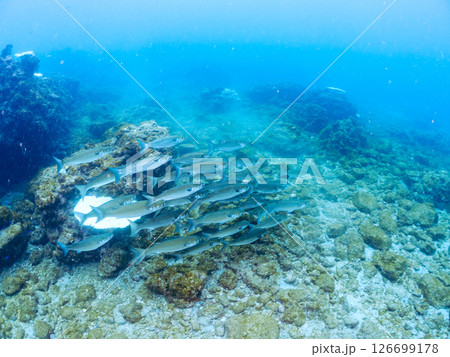 ニザダイ、アイゴ、タイワンカマス、キホシスズメダイ他群れ。ヒリゾ浜中木南伊豆町伊豆半島静岡県2024