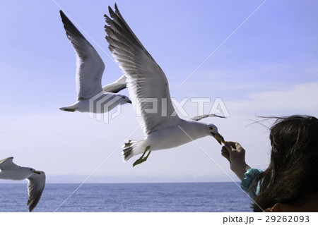 カモメの餌やり 小樽海上観光船